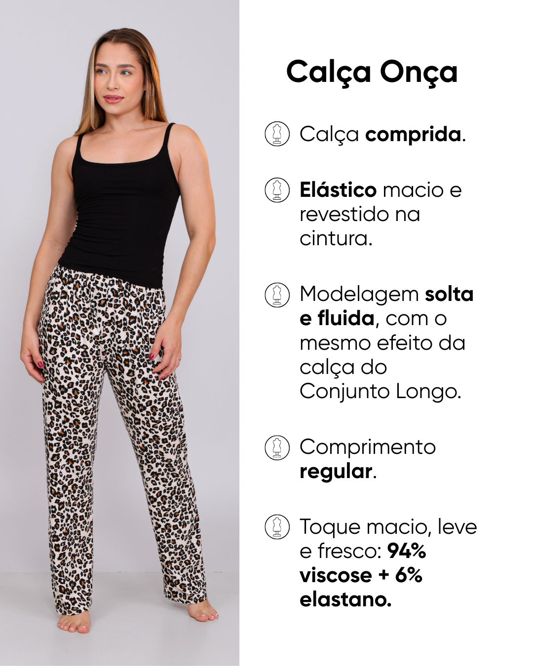 Malha de viscose: 94% viscose e 6% elastano.